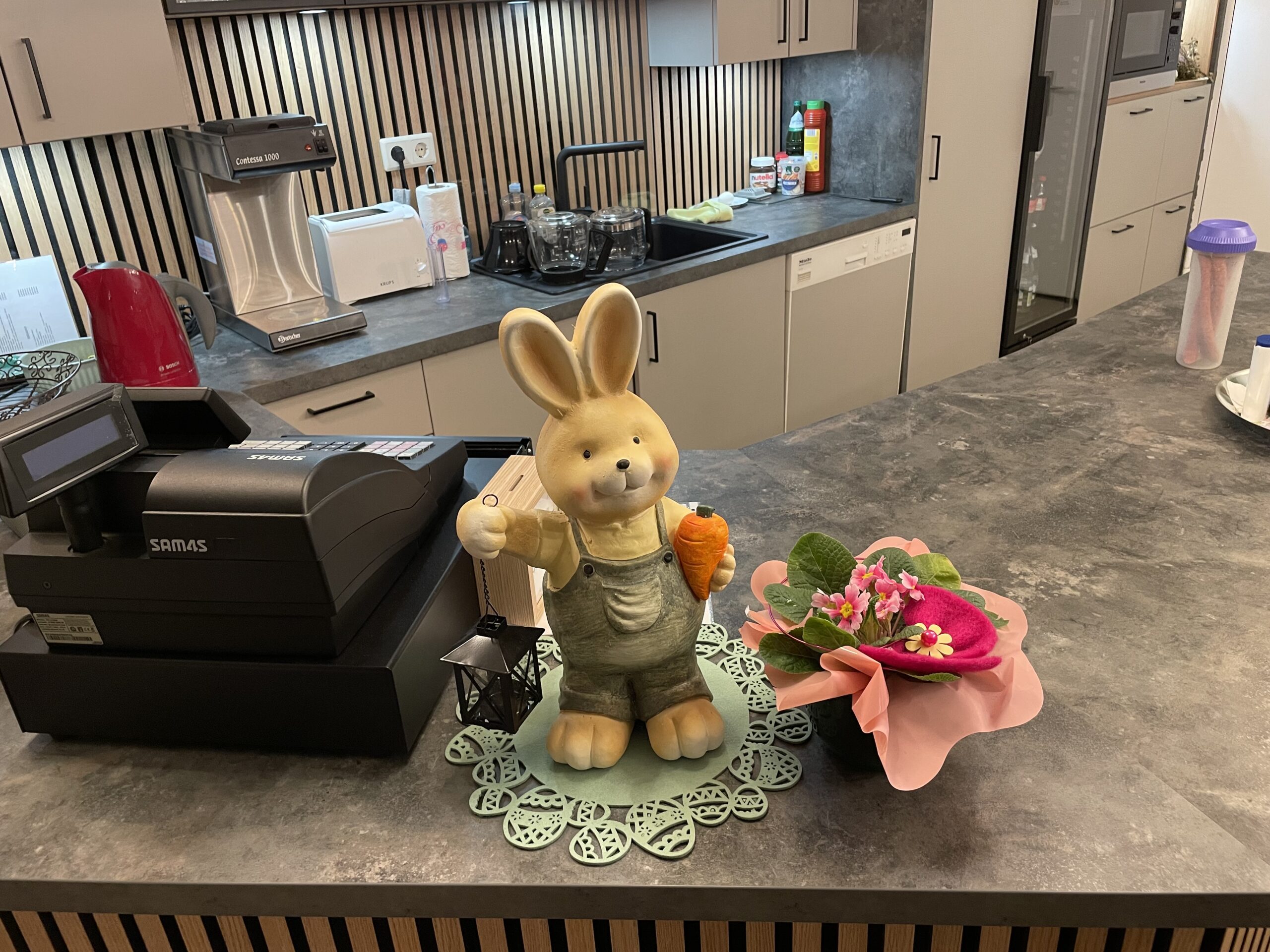 An den Osterfeiertagen 2026 ist die Kontaktstelle mit angegliedertem „CaféZeit“ wie gewohnt für Euch geöffnet. Die fleißigen Osterhasen in unserer „Kontaktstellenfamilie“ haben die Dekoration nebst kleinen Geschenken schon Anfang März vorgenommen. Wir bereiten uns gemeinsam auf das höchste Fest der Christen vor und feiern dann zusammen die Auferstehung des Herrn, ohne den es häufig im Alltag nicht geht. Allen Gästen unseres Hauses frohe, friedvolle Tage in österlicher Freude.